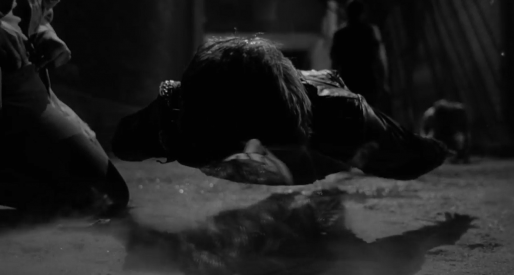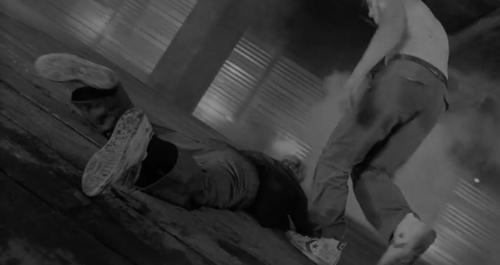 In this screenshot, Rusty had just been bashed on the head and fallen to the floor. The character’s body is levitating to show that he’s dying. At first, I thought he had died, but he went unconscious and was having an out-of-body experience. Probably like when people talk about that space between life and death. Coppola uses the expressionist approach for this sequence because Rusty is literally floating in the air and practically swimming through it.